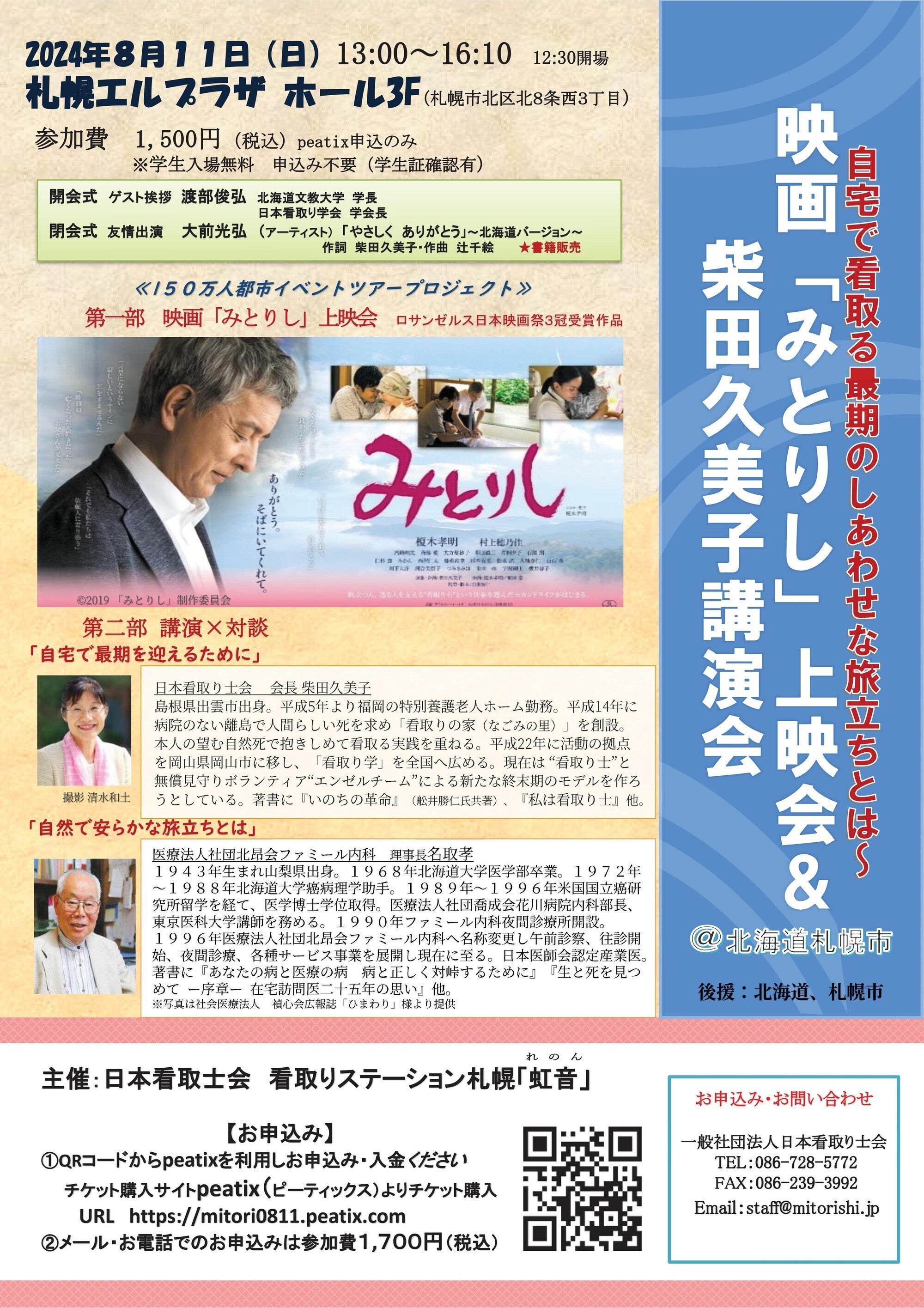 当日は「自然で安らかな旅立ちとは」をテーマに、医療法人社団北昴会ファミール内科理事長の名取孝先生にご講演をいただき、名取先生と当会会長の柴田久美子との対談も予定しております。