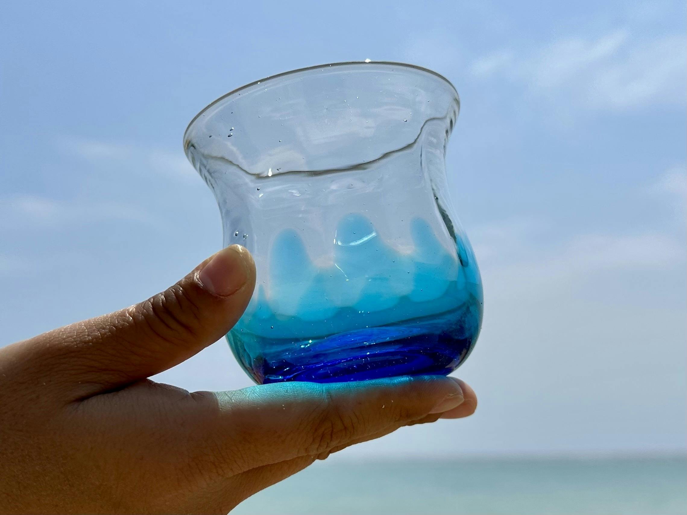 沖縄生まれの吹きガラス工芸である琉球ガラス、その中でも、泡盛の瓶などを溶かしてつくる昔ながらの作り方の「再生の琉球ガラス」の工房を名護市東海岸の久志地域で、海・山・森などの美しい自然やあたたかい地域の人々との繋がりをイメージしながら作り、この地域の魅力をたくさんの人に伝えたいと思っています!