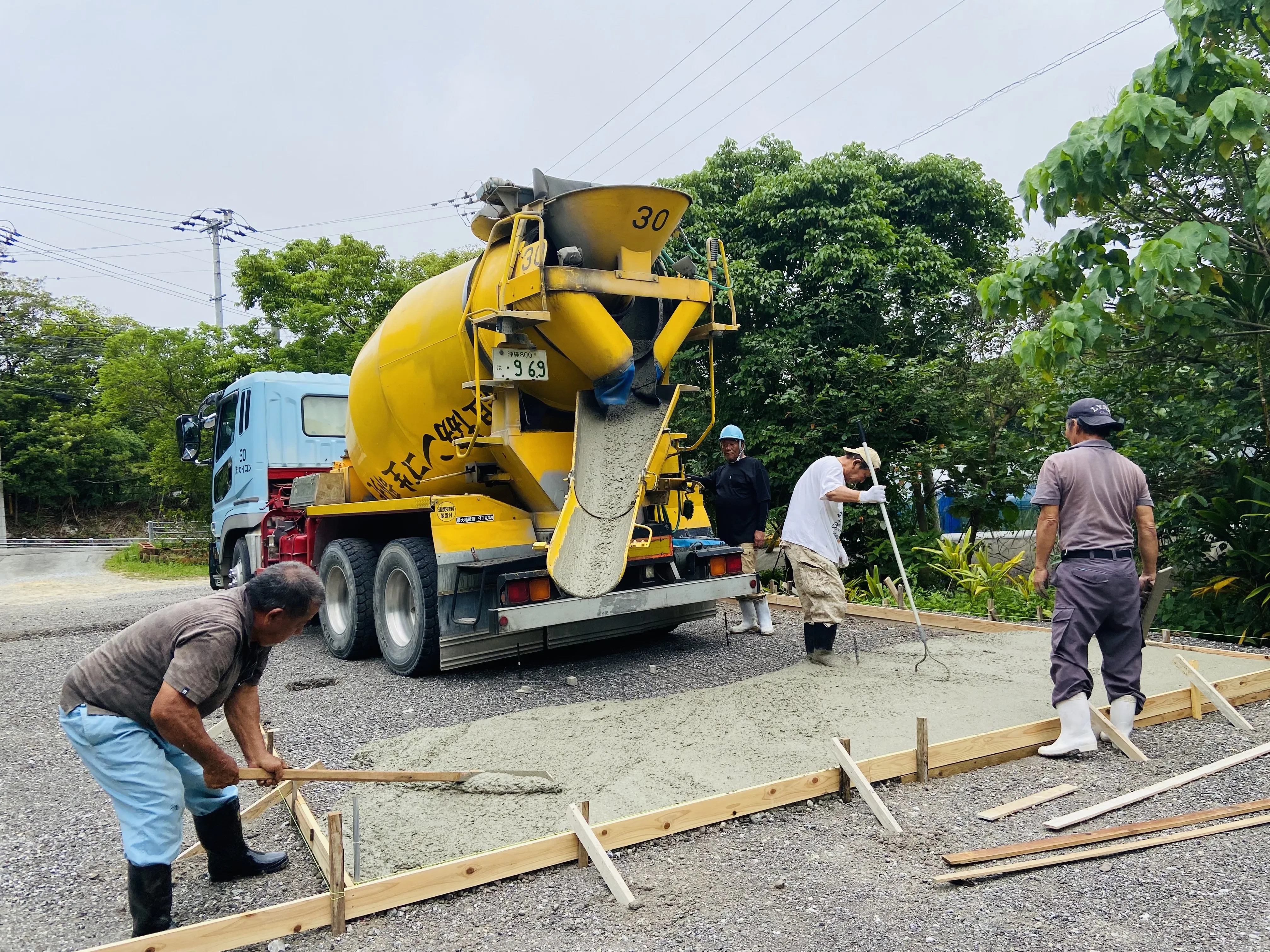 近くの地域の方に協力していただいて、土間を作りました!^ ^