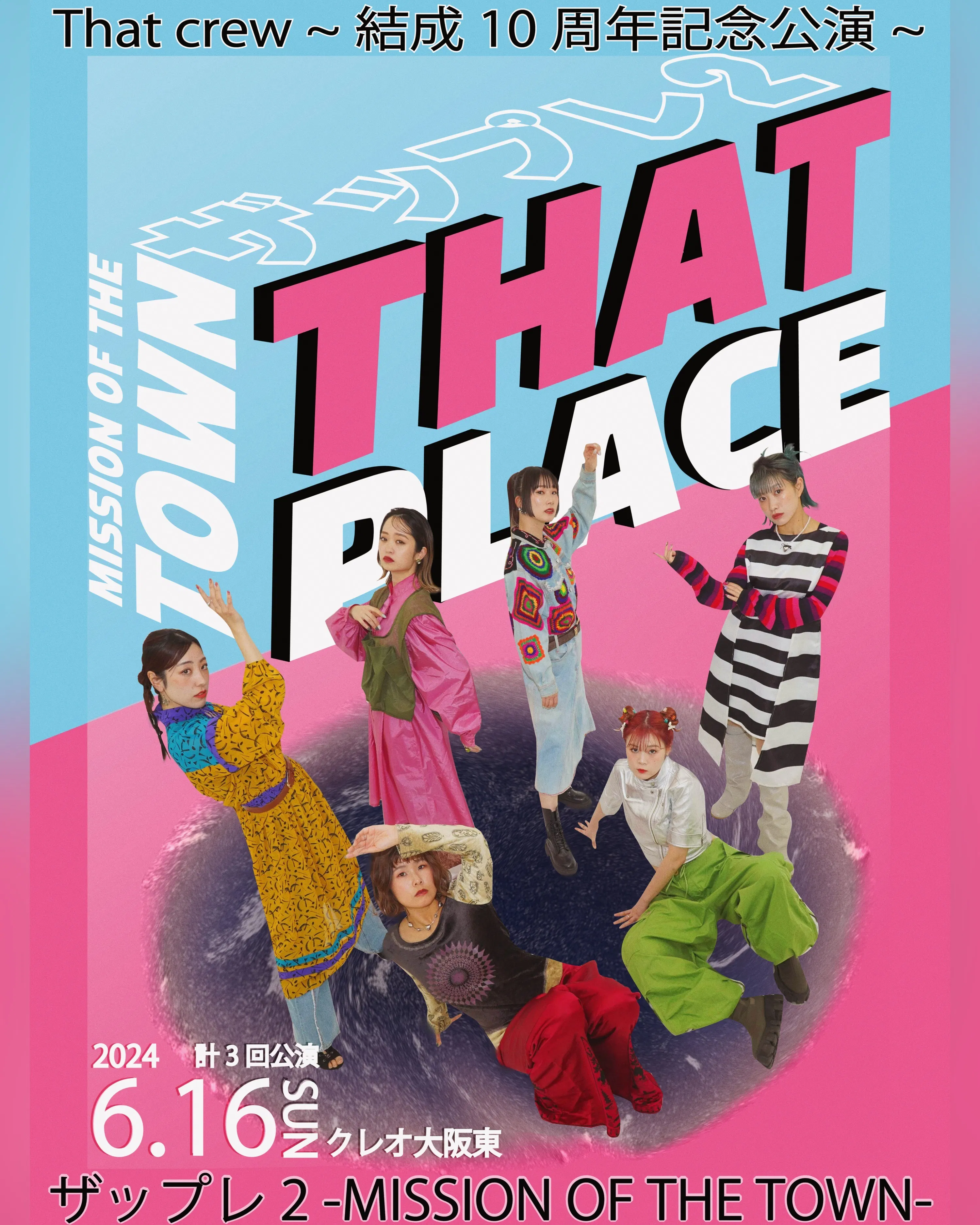 2024年6月16日、ダンスチームThat crewの10周年記念単独ダンス公演「ザップレ2」を、クレオ大阪東にて開催いたします。この日を皆様と共に祝うことができることを心より楽しみにしております。