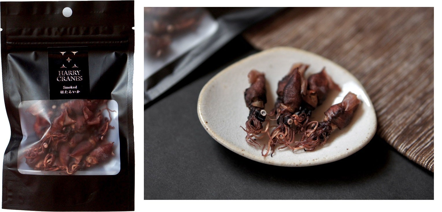 『駒田蒸留所へようこそ』でウイスキー設定監修を行った若鶴酒造で販売している燻製おつまみ(「スモークナッツwith能登塩」「Smoked ほたるいか」を予定)に、大判イラストカードをセット
