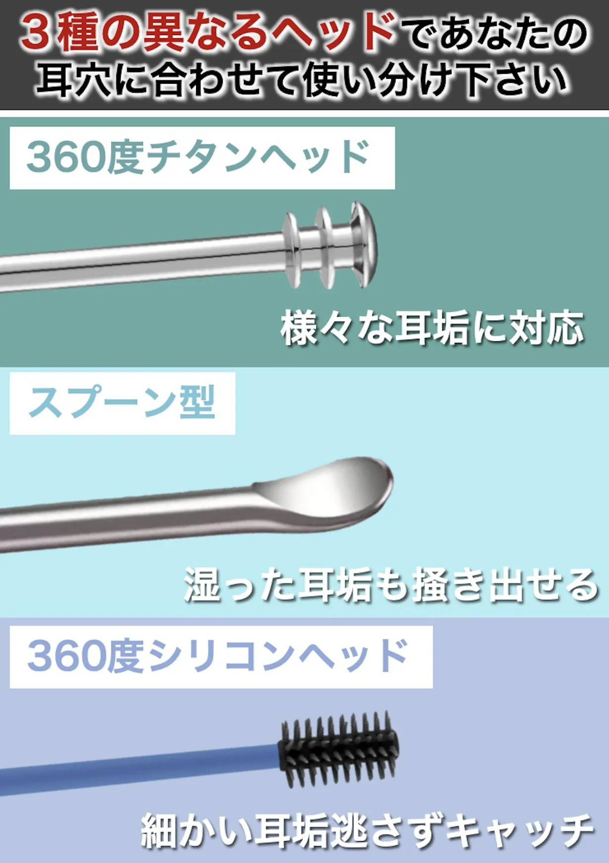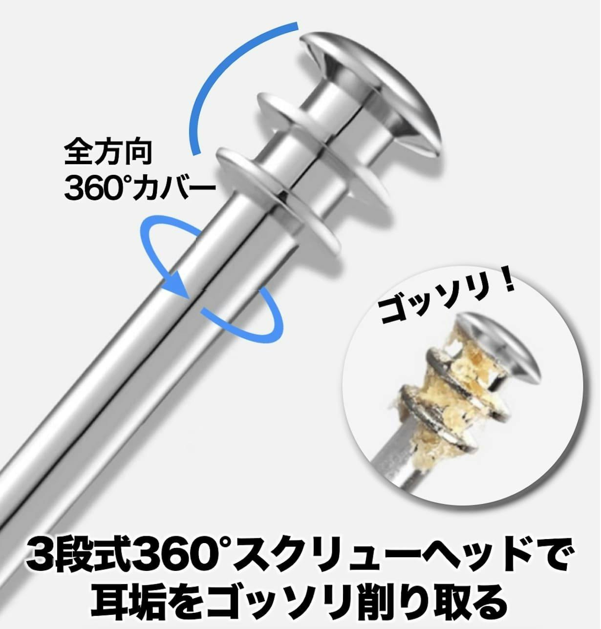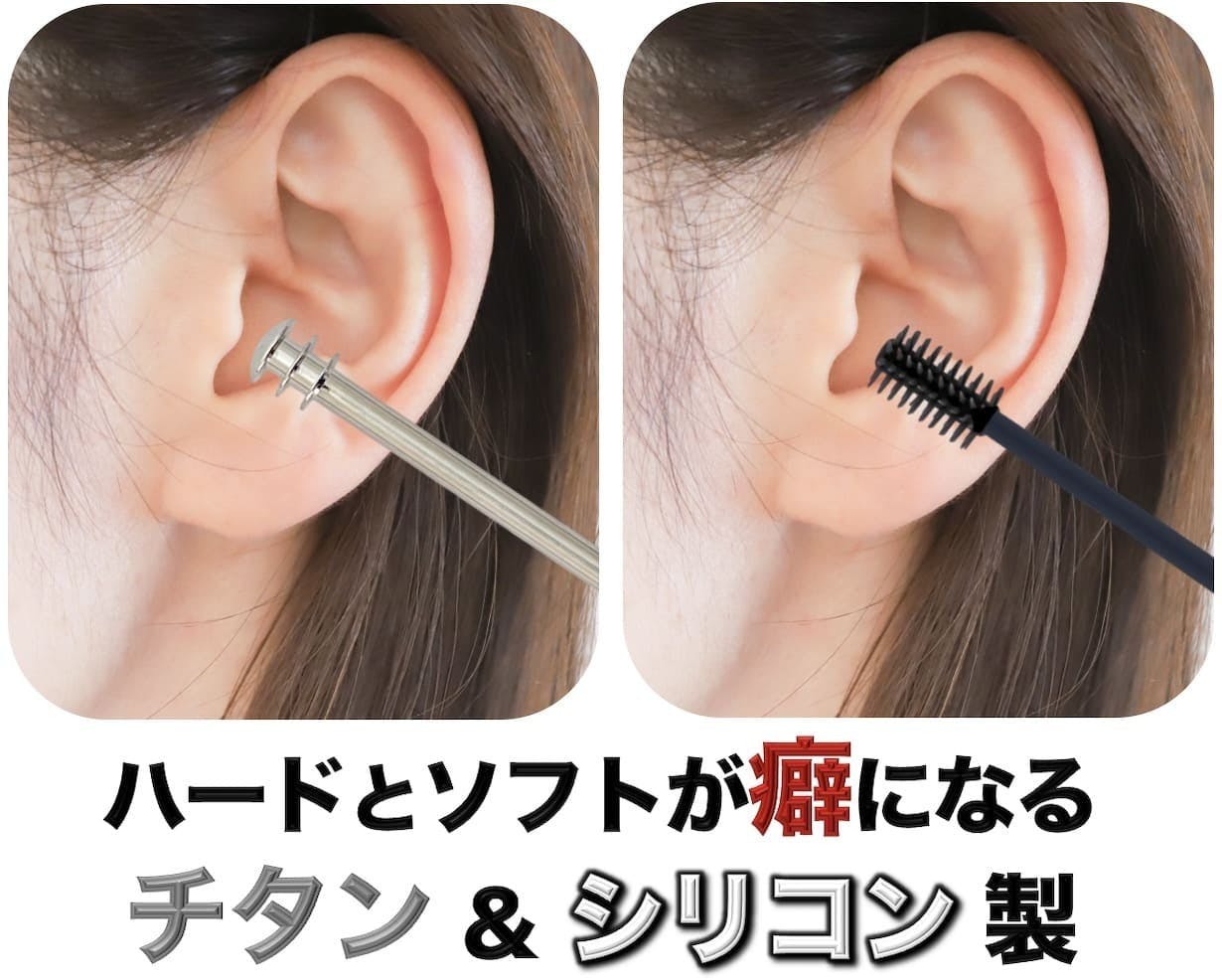 マルチタイプの360度チタンクリーナーと柔らかいシリコン性クリーナーで耳穴の全方位をクリーニング!