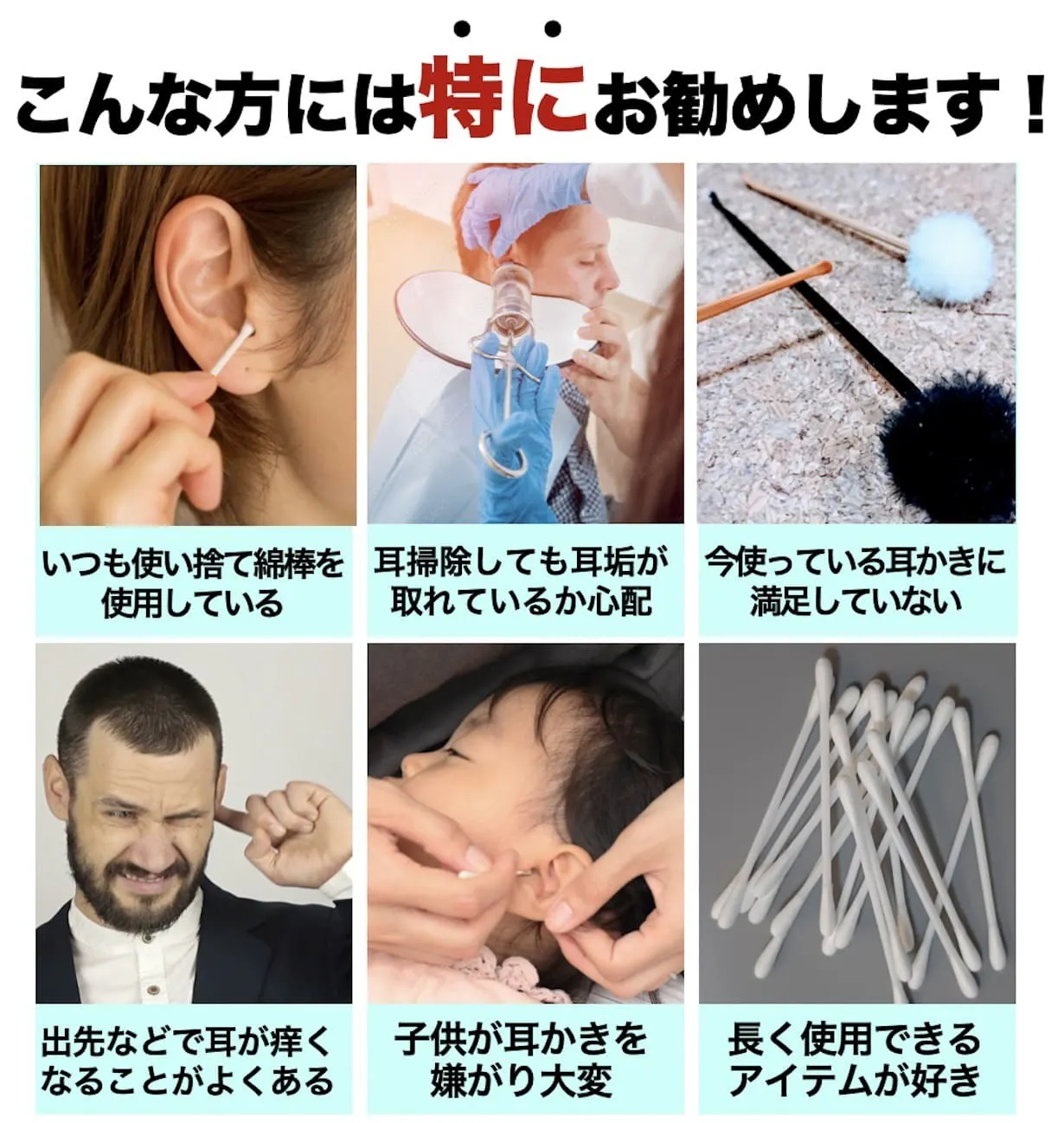 ご購入いただいた皆様のお声からより使いやすく進化した耳かきで『綿棒』×『耳かき』のような商品です!