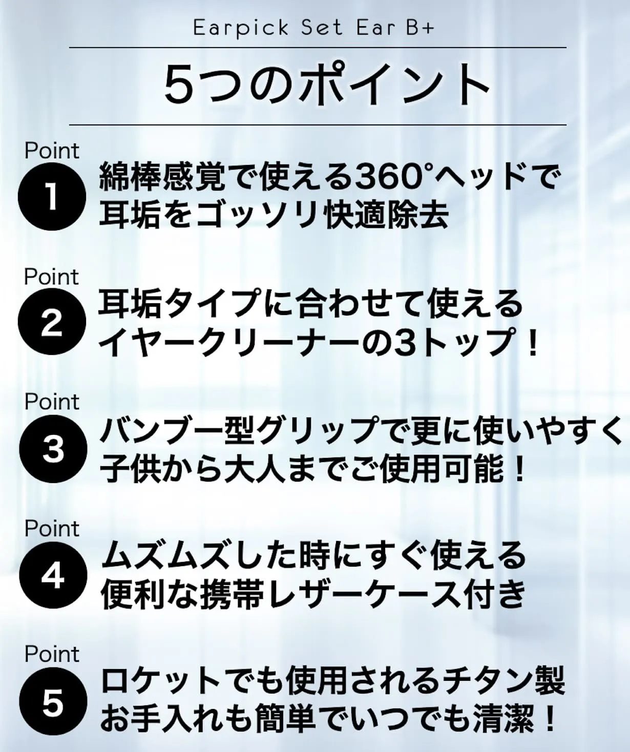 チタン製のEar B+が究極の耳かき体験を提供いたします。