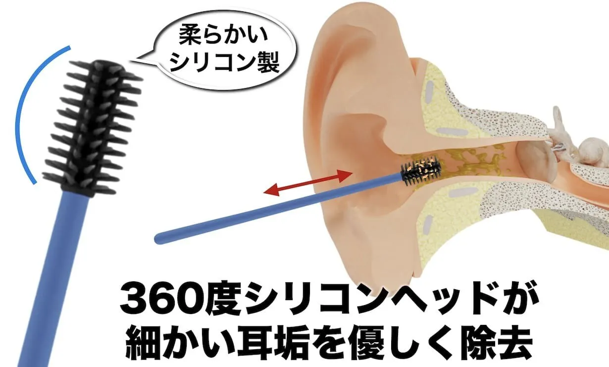 しなやかで柔軟な素材だから耳穴にフィットして細かい耳垢も逃さずキャッチ!