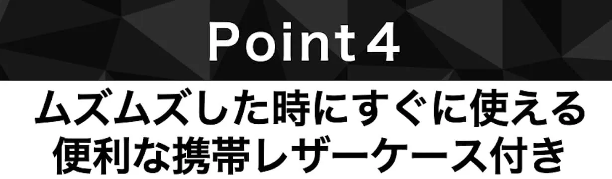 今回も好評だったムズムズしたらいつでもどこでも使える持ち運びに便利なレザーケース付き!