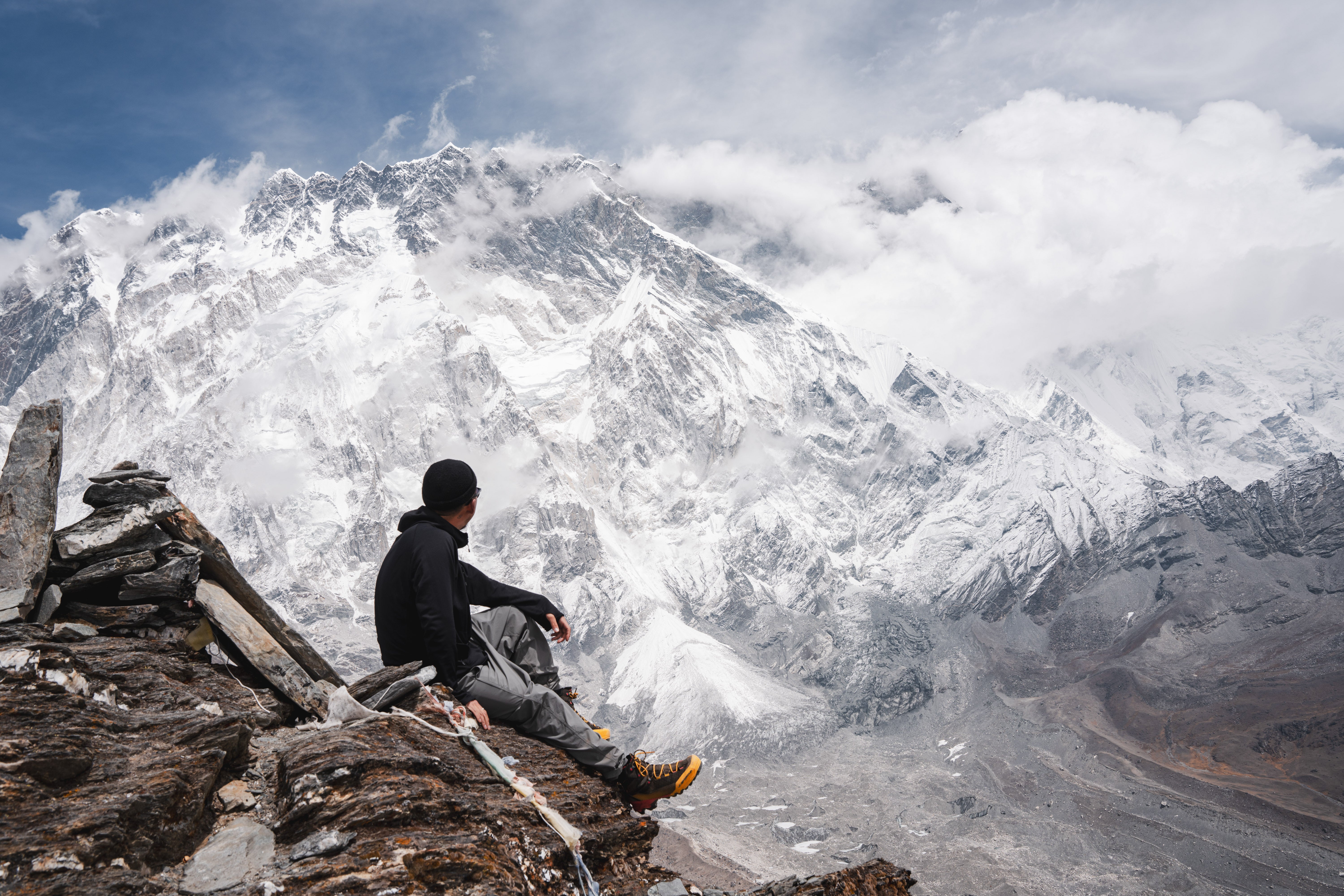 エベレストベースキャンプは標高5340mのクンブ氷河の上にあります。普段エベレストを目指す登山隊しか滞在出来ませんが、今回登山隊に同行の為特別に滞在させて頂きました。氷河の上のベースキャンプには無数のテントが建ててあり、壮大な景色でしたが、氷河から昔のゴミも出てきていました。落としてしまっただけかもしれませんが、好きで登山をして自然に触れに行った人たちが自然を汚していくのならとても悲しいことだなと思いました。その中で日本の製品のゴミもクンブ氷河から出てきていました。持ち帰れる量にはなりますが、日本に持ち帰ってきました。今年は特に氷河が溶け問題になっている様ですが、エベレストベースキャンプやロブチェピークを登って身をもって感じました。地球は確実に温暖化に進んでいるのだと。ゴミの問題もそうですが、一人一人の行動が今後の地球環境に直結するのだと再確認しました。