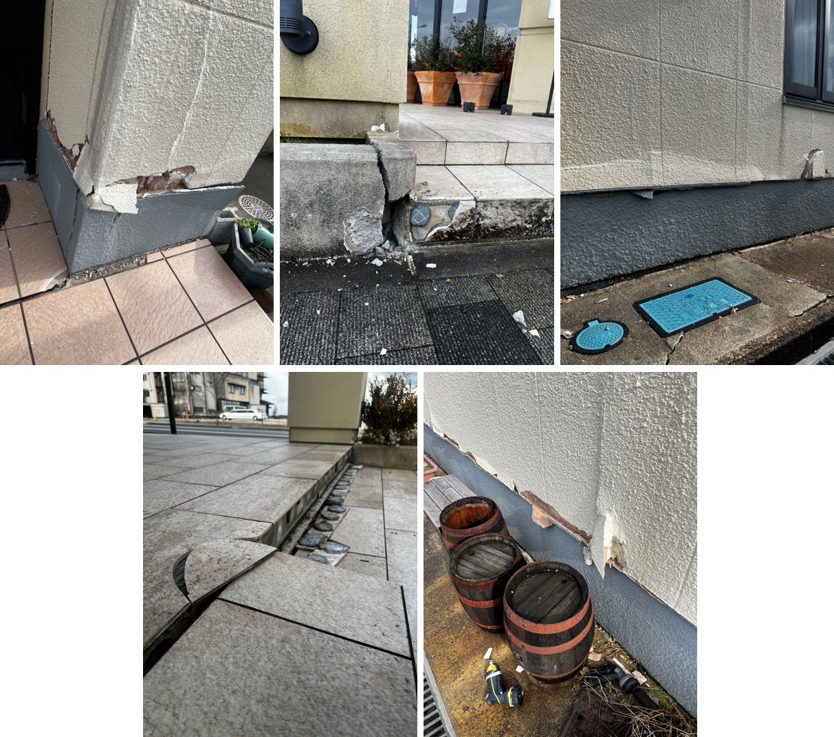 ▲外壁の損傷・エントランスのタイルやコンクリートの破損