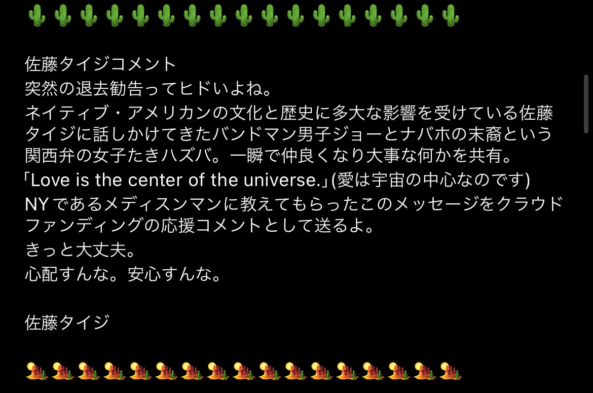 クラファン応援コメント第三弾は佐藤タイジさん!!