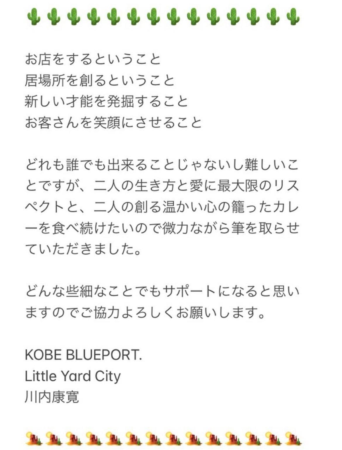 応援コメント第四弾はKOBE BLUE PORT 川内康寛さん!!