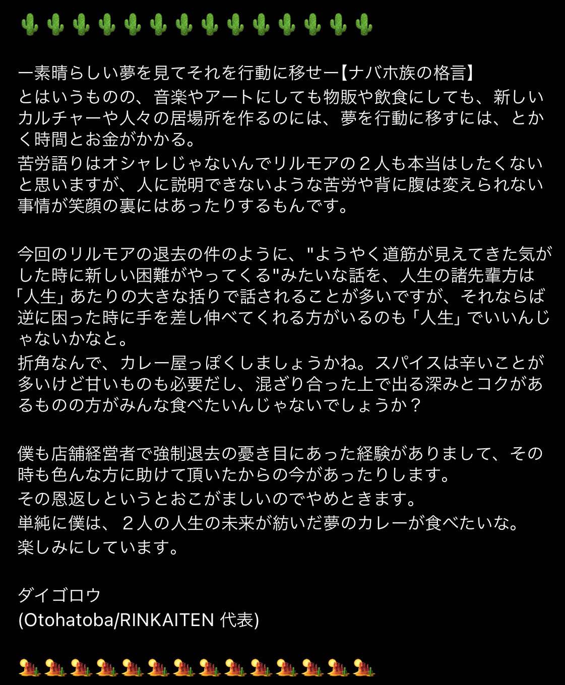 応援コメント第六弾はRINKAITEN / otohatoba 代表ダイゴロウさん!!