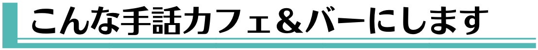駅からバスで10分の「間借りの手話カフェ」から独立し駅徒歩2分の「手話カフェ&バー」をオープンさせたいと考えております。平日日中はコワーキングスペースとして解放し、地域とのつながりを醸成します。