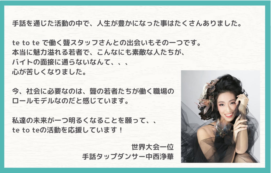 tetoteスタッフの謳歌がインスタグラムで「自分のような聞こえない若者の働き口を増やしたい」という想いを発信していたところ、多くの反響をいただきました。フォロワー数は2.5万人を超え、全国からたくさんの応援コメントが届きました。