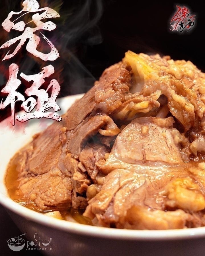 豚の旨みが凝縮された豚骨スープとキレのあるカエシがベースのスープで小麦香る極太ちぢれ麺がスープに絡み合いラーメンの上にのせた野菜と、とろっとろに煮込んだ香ばしい炙りチャーシューと一緒に頬ばる事で最高の化学反応が起きます。ぜひお店で味わってください!