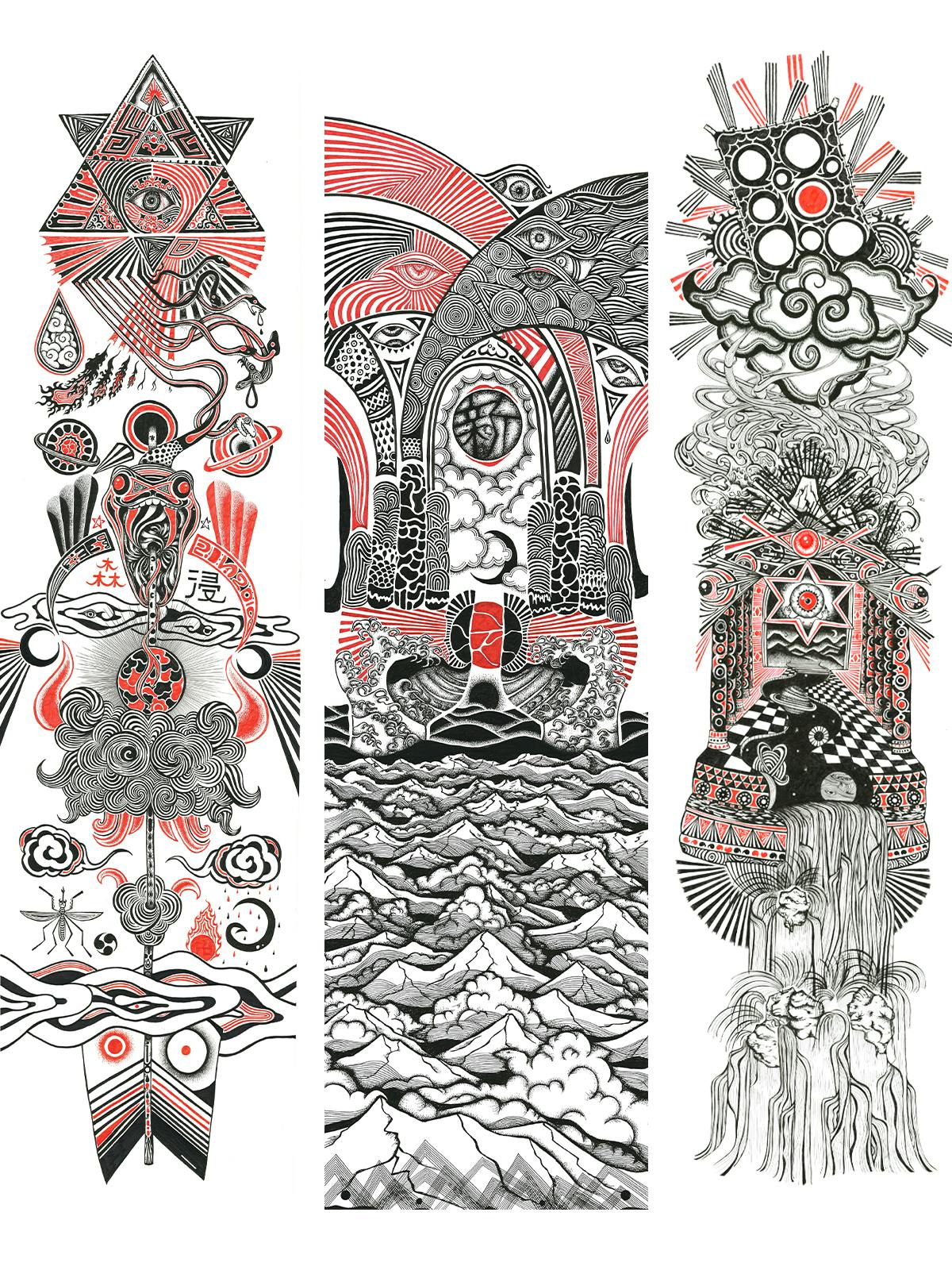 日本民族には脈々と受け継がれている自然へ敬いがあると思います。「自然を感じる事で神を感じ、神を感じる時には自然を感じる」。山が御神体となり、木は御神木として、神は自然に宿るとされてきました。自然がおりなす現象は、大きく、深く繋がっている。言葉で表現が難しいのですが、そういった気持ちで表現しています。