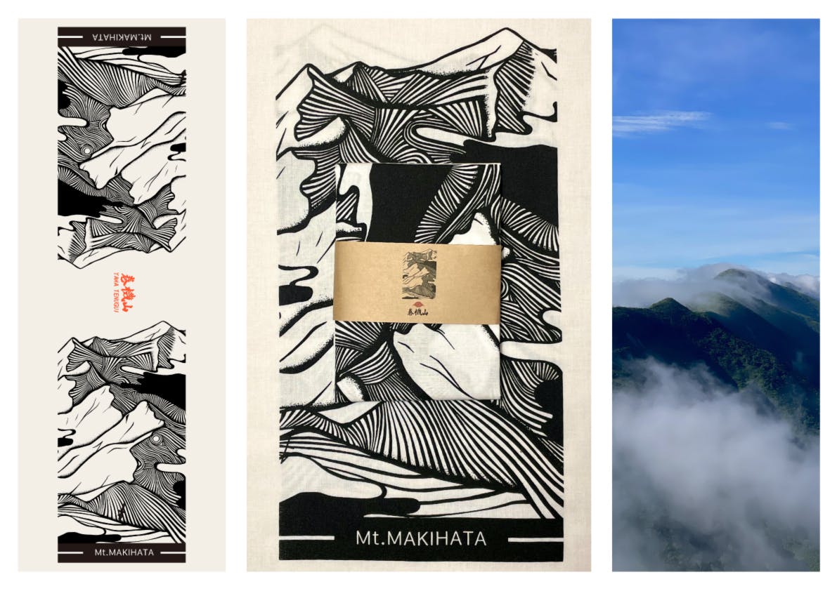 絵の根底にある「循環」や、「自然」を教えてくれたのも巻機山です。どこを切り取ってもとってもいい景色なのですが、その中でも僕が一番好きな前巻機から朝日岳を眺めた稜線を描いた景色をシルクスクリーンプリントした手拭いになります。