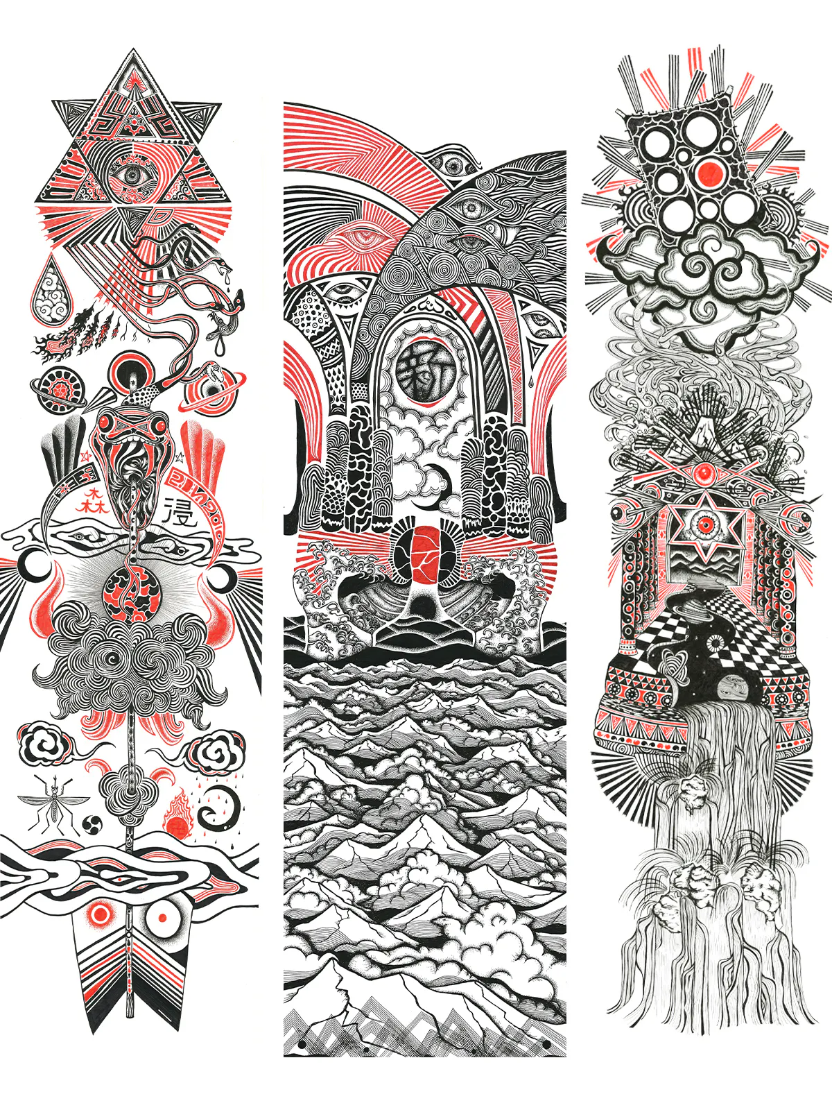 冬には雪が降り、春になり溶けた雪が大地を育み、夏には川で魚と遊び、秋には雪解け水で育った美味しいお米を収穫できる。豊かな四季が繰り返す自然現象の積み重ねの上に立たせてもらえてる事に感謝し、自然の中に身を置き、雪山を登りスノーボーディングをする事。これらは絵を描くモチベーションに繋がっています。