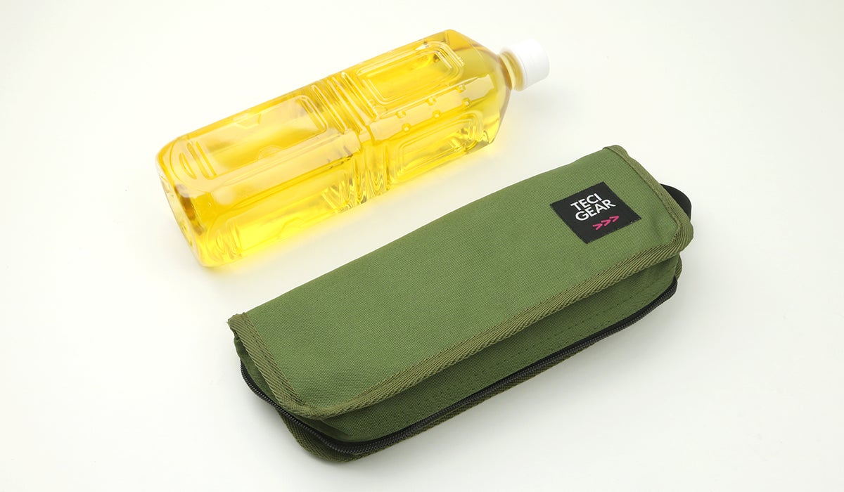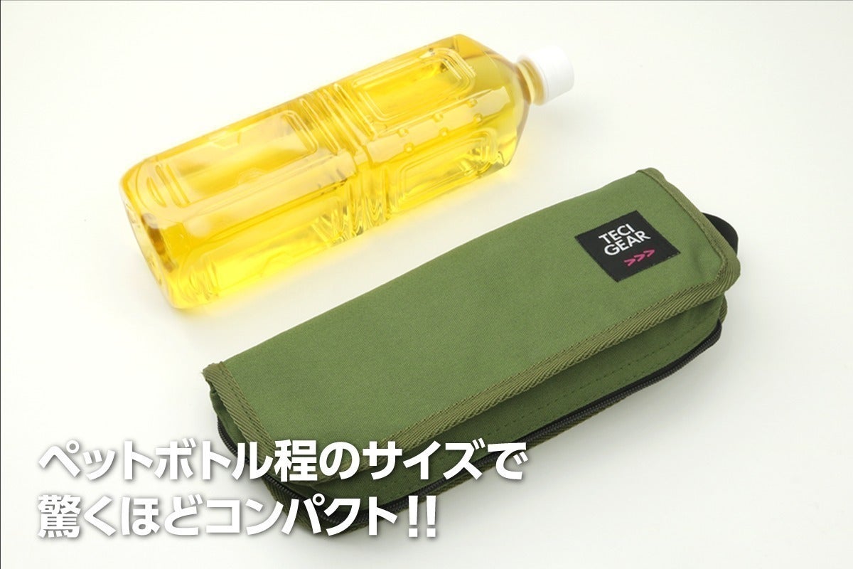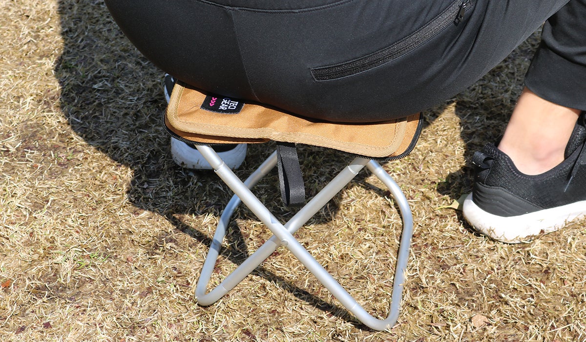 ポケットチェアの最大の特徴はポケットに入るコンパクトさ。1Lのペットボトル程のサイズでどこでも自由に持ち運びが可能です。