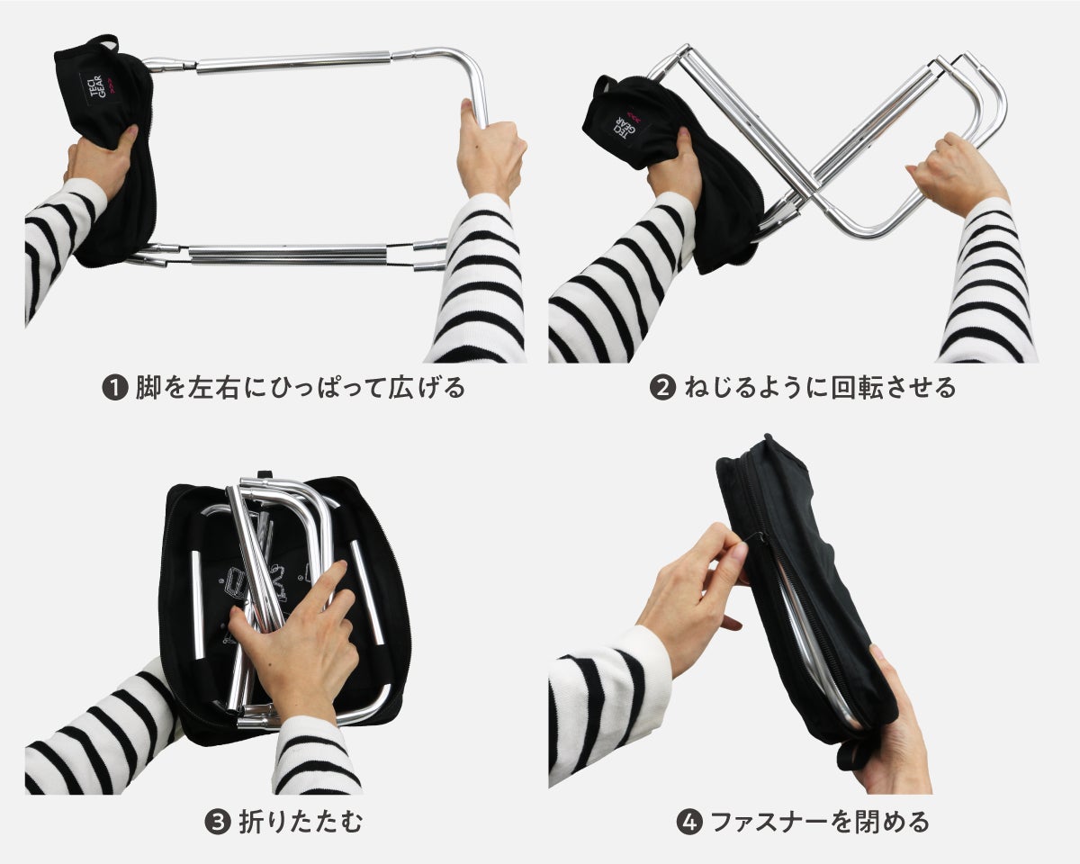 収納ポーチが座面になるのでポーチから出し入れする必要がなく、チャックを開けてスグに椅子のセットが可能です。
