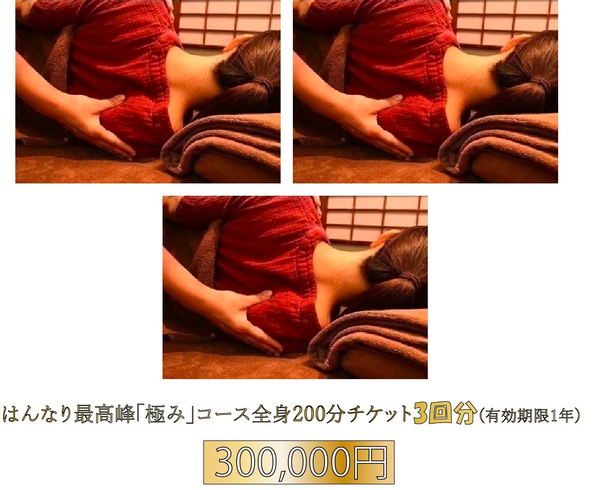 ・支援金100,000円 → はんなり最高峰「極み」コース全身200分チケット(有効期限1年)