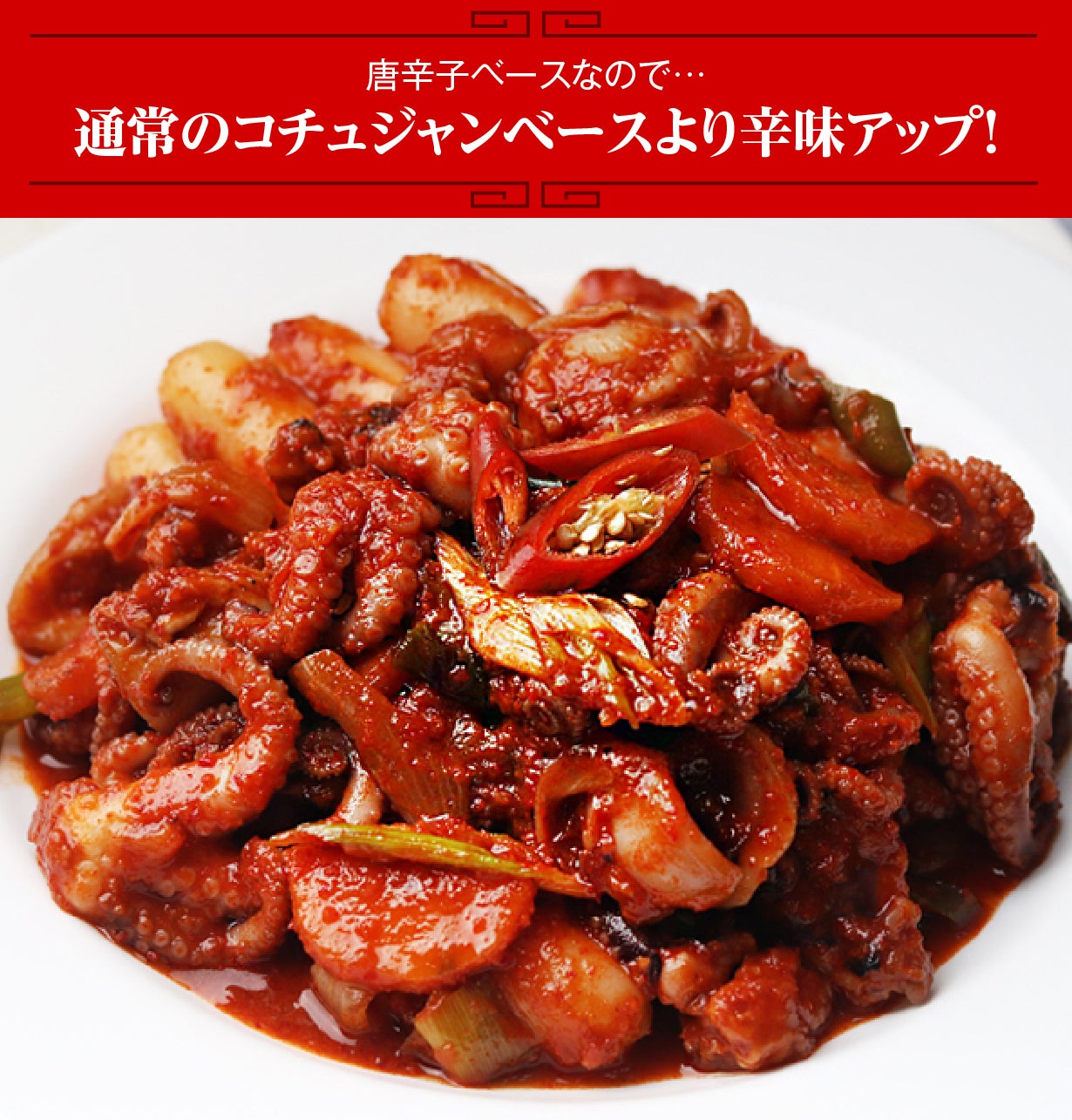 本場韓国でもリピーターを生み出す独自の厳選素材!冷凍、なのにイイダコのプリプリ食感を楽しめる。冷凍保存可能なので賞味期限も安心。