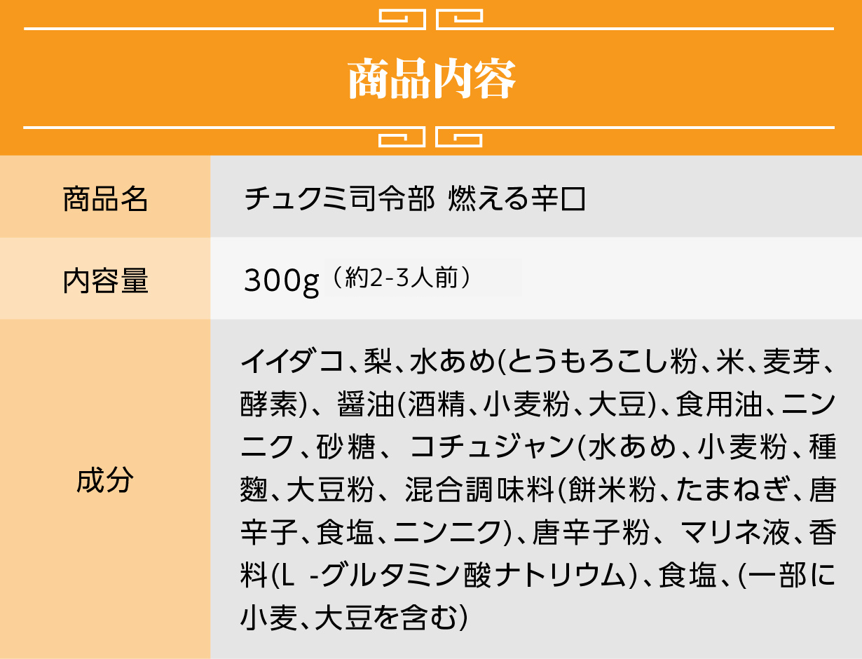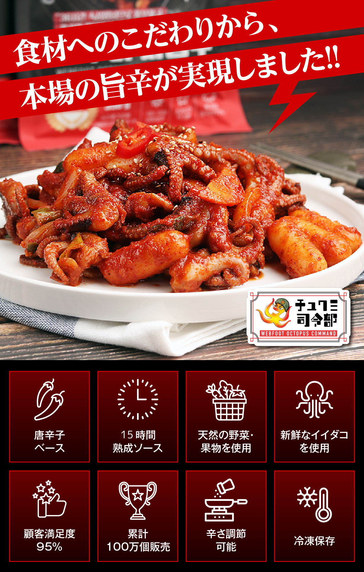 チュクミ司令部は2016年の販売から累計100万個以上を販売し、みなさまに愛されてきました。辛さの決め手となる唐辛子の選定から本場のおいしさを届けるための冷凍まで徹底的にこだわっています。本場韓国で約10年にわたって愛されてきたこの味を日本のみなさまにお届けできることを嬉しく思います。