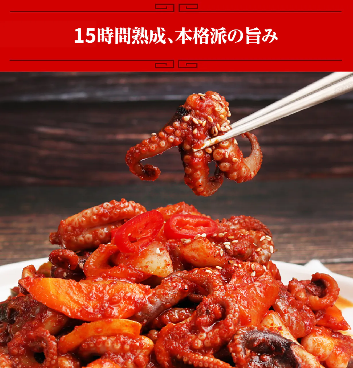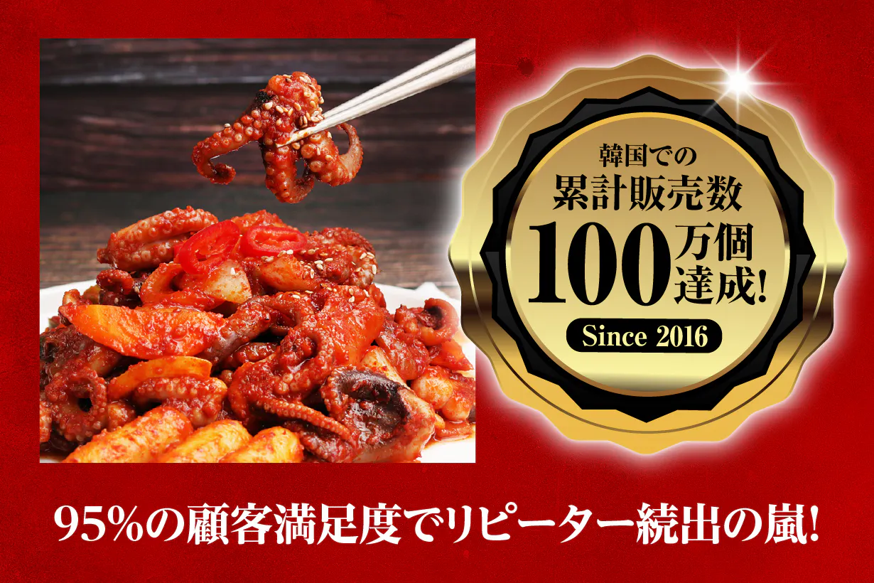 本場韓国でもリピーターを生み出す独自の厳選素材!冷凍、なのにイイダコのプリプリ食感を楽しめる。冷凍保存可能なので賞味期限も安心。