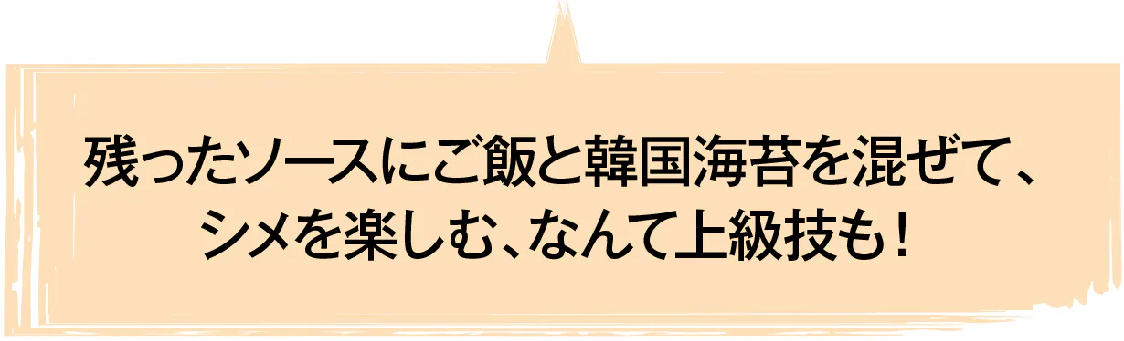他社はコチュジャンベースが一般的な味付けの中、唐辛子ベースにすることで、より長時間の辛さが長続きします。にんにくも余すことなくたっぷり使用して風味も長続き。