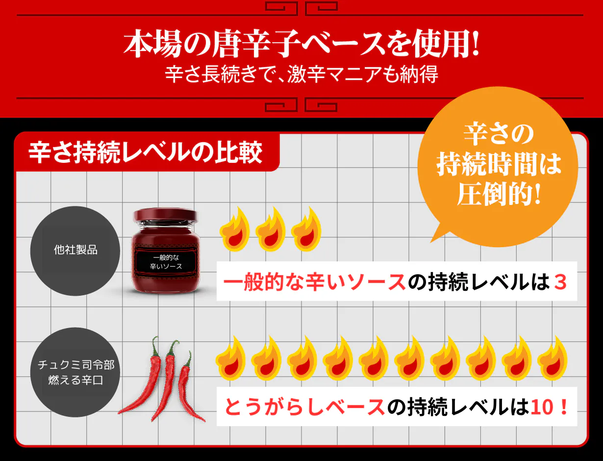 「市販商品では辛さへの妥協が必要」を覆す!唐辛子ベース使用で後引く辛さを徹底実現!