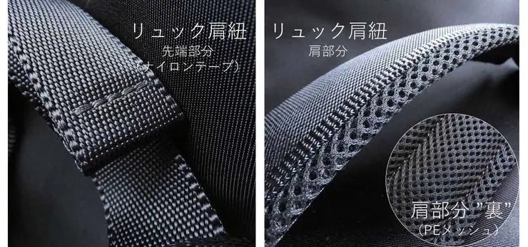 リュック肩紐は「ナイロンテープ+肩部分のみクッション材」配置なので、格納してもかさばりません