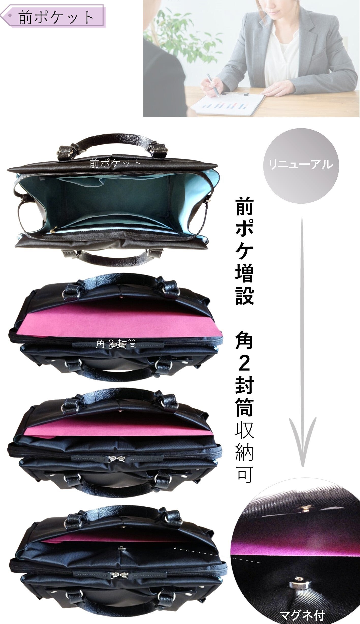 商談では きっちりお仕事バッグの顔