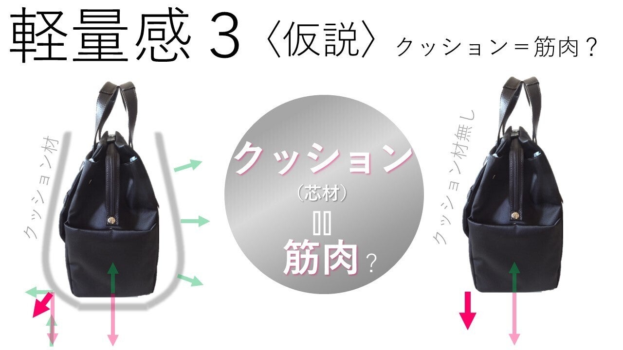 "バッグの自重を支えている"