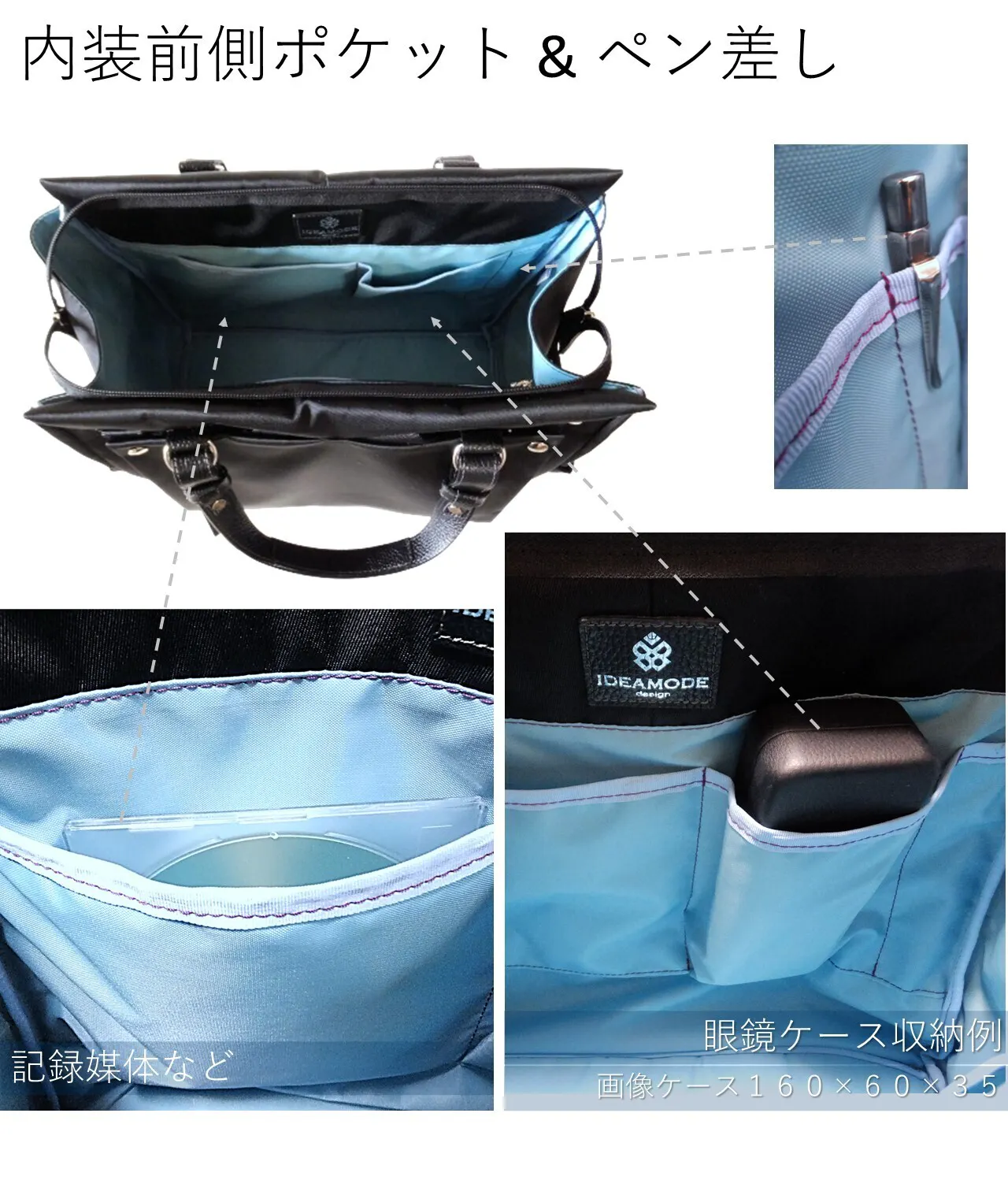 「内装 前側ポケット & ペン差し」です。