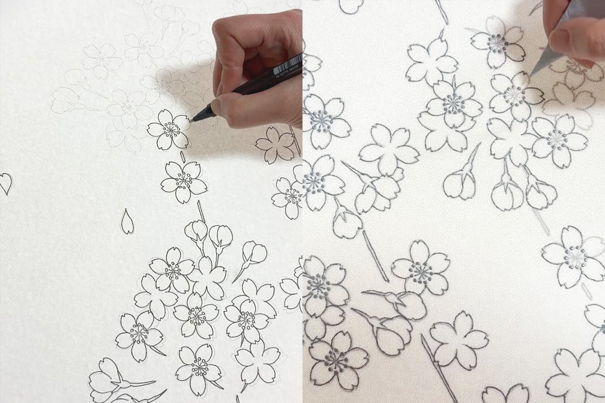 職人による一貫作業という東京手描友禅の伝統的な特徴を、デジタル化の工程でも大切にしています。原画の持つ粋な風合いや繊細な色彩表現を忠実に再現することで、手描友禅の本質的な美しさを損なわないよう努めています。