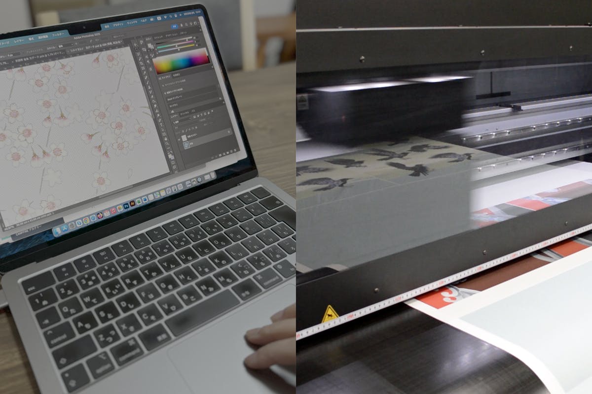 - 仕上がったデータを職人自身がリデザイン・監修し、デジタル捺染プリントをしていきます。