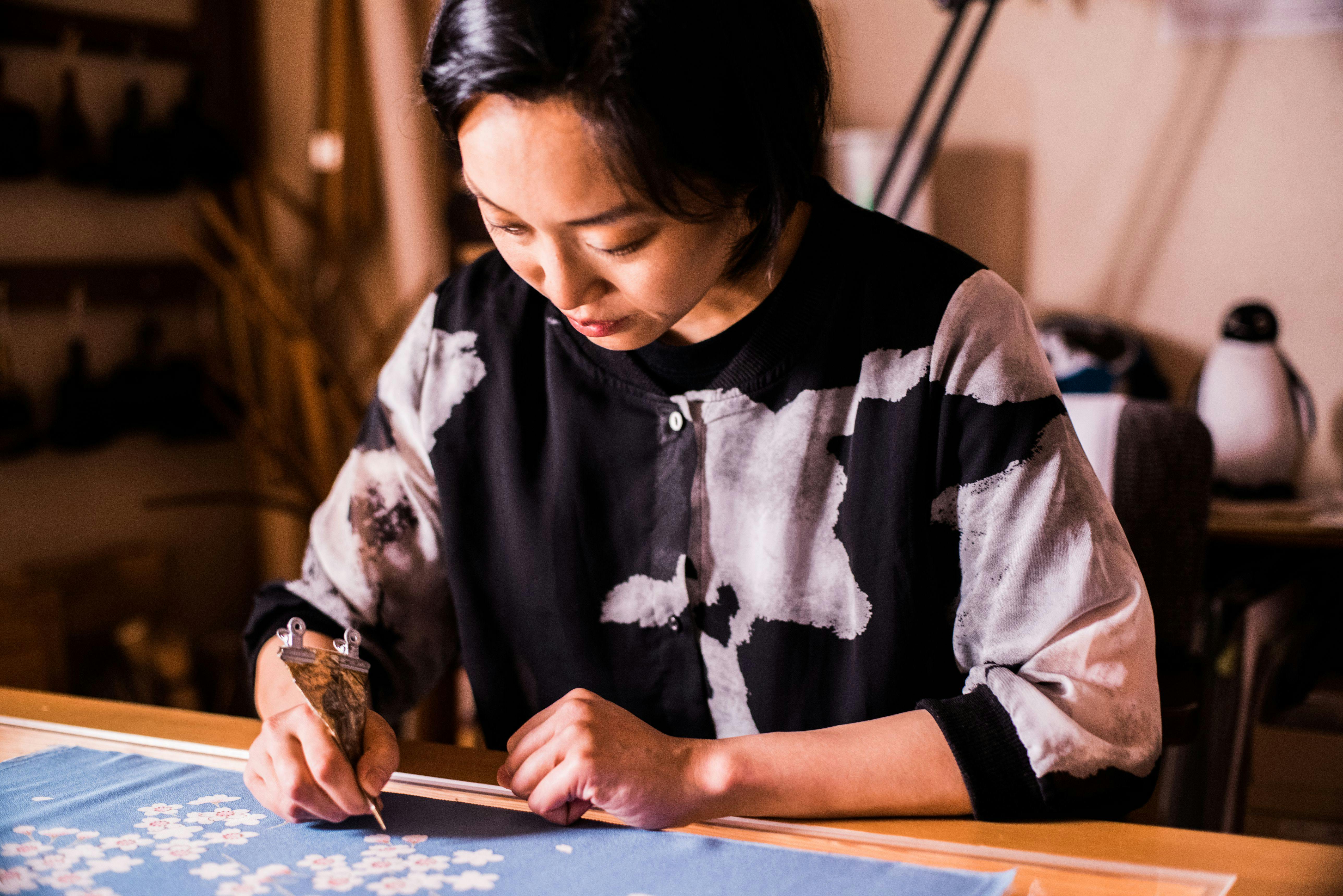 - 東京の職人は図案の作成から糸目糊置き、色挿し、地染めまで