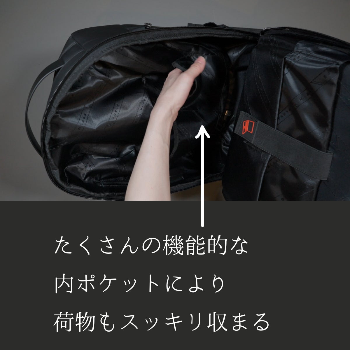 荷物を簡単に出し入れできるように、サイドからもアクセスできるジッパー。