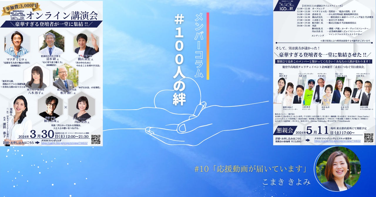 SNSへの投稿は、ハッシュタグ「#100人の絆」を付けて、みんなでつながりましょう。引き続き応援よろしくお願いします!