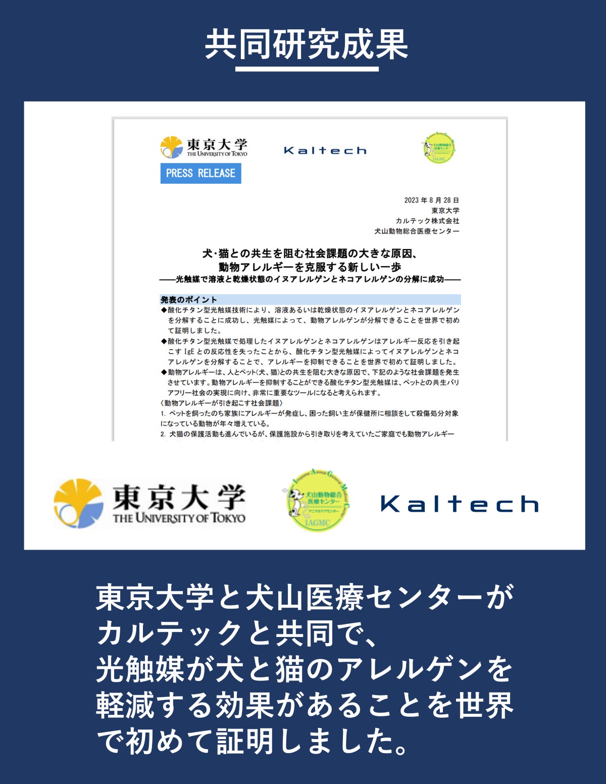 ――光触媒で溶液と乾燥状態のイヌアレルゲンとネコアレルゲンの分解に成功――