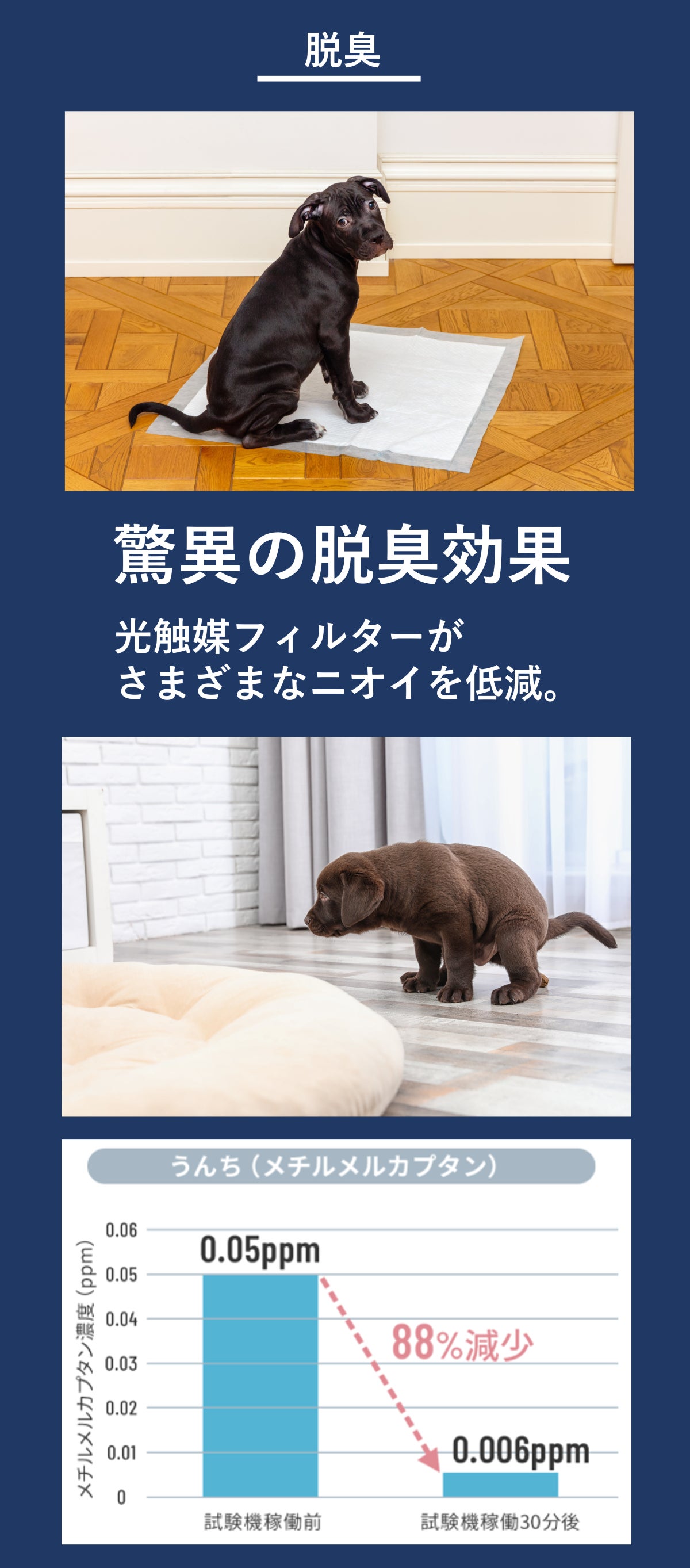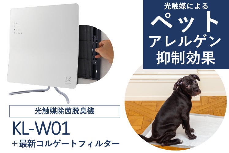 光触媒によるペットアレルゲン抑制 光触媒除菌脱臭機+最新型フィルター