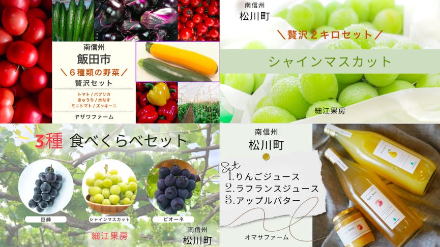 美味しさや品質にこだわり、手間を惜しまず丁寧につくられている農家さん、農園さんからご提供いただいた南信州の特産品を、是非この機会に召し上がっていただけたら嬉しいです。