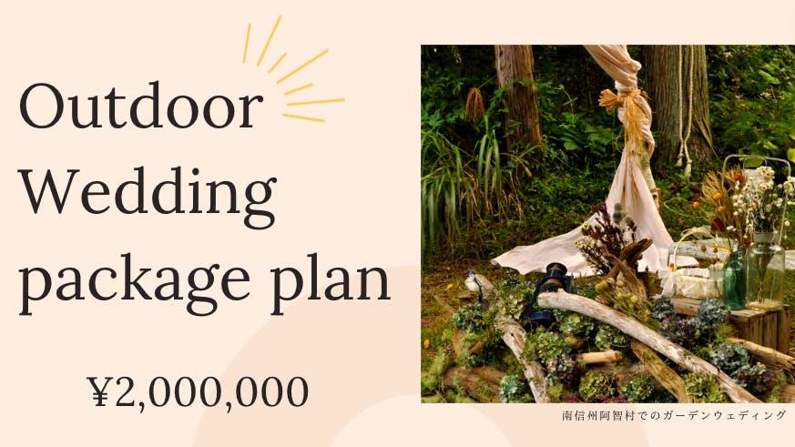 今回のリターンには、アウトドアウェディングのパッケージプランも含まれていますが、実際にどんな内容なのか知っていただきたい!