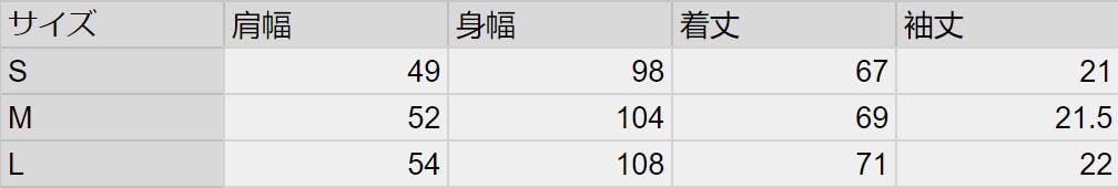 Tシャツサイズ