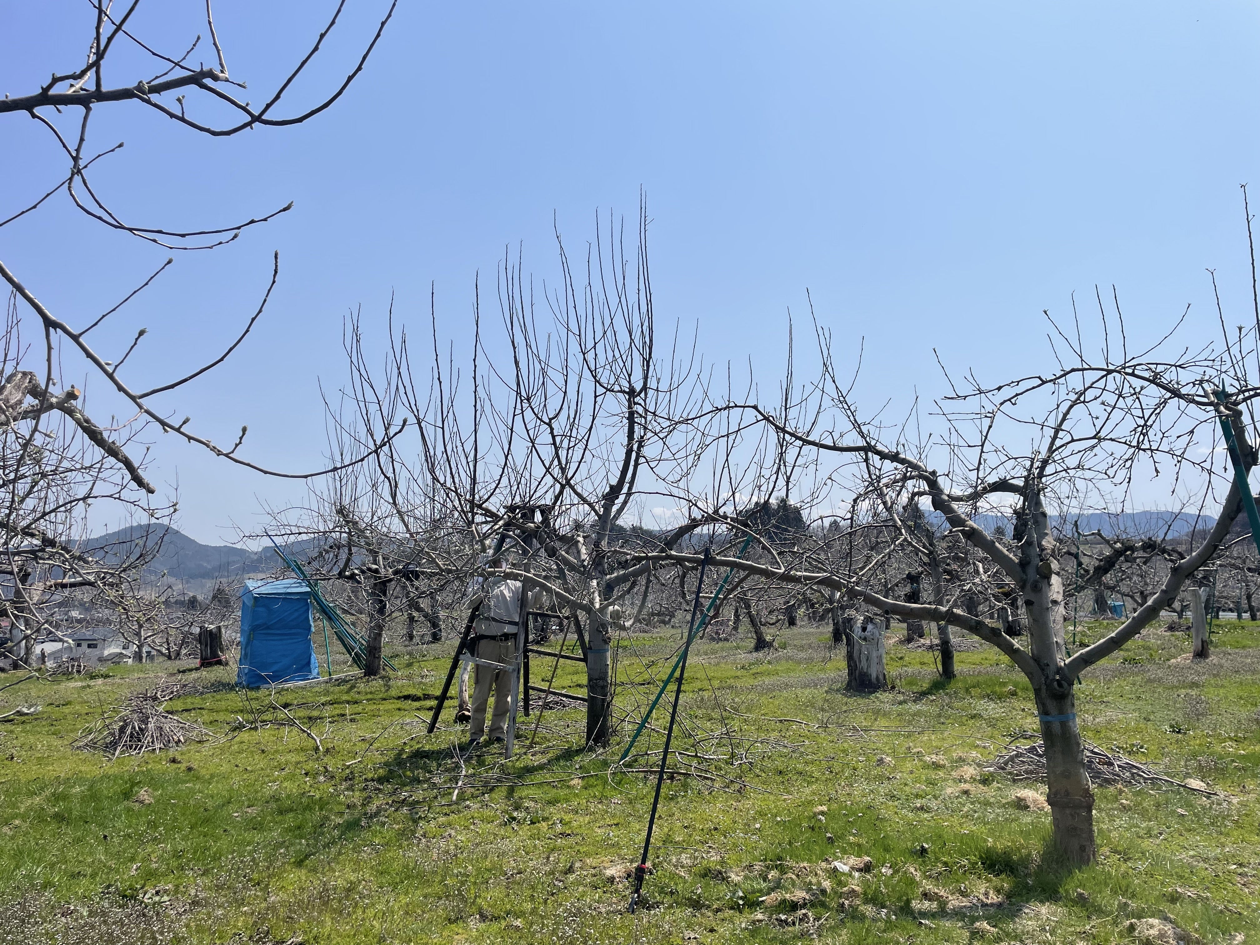 本日のりんご畑の様子です。みんなで「剪定」しました。