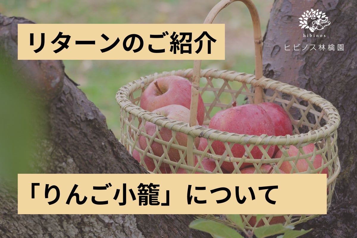 今回は、この「りんご小籠」と「とれたてりんご」のセットをご用意しています。現在3名の方にこちらのリターンをお選びいただいています。ありがとうございます!