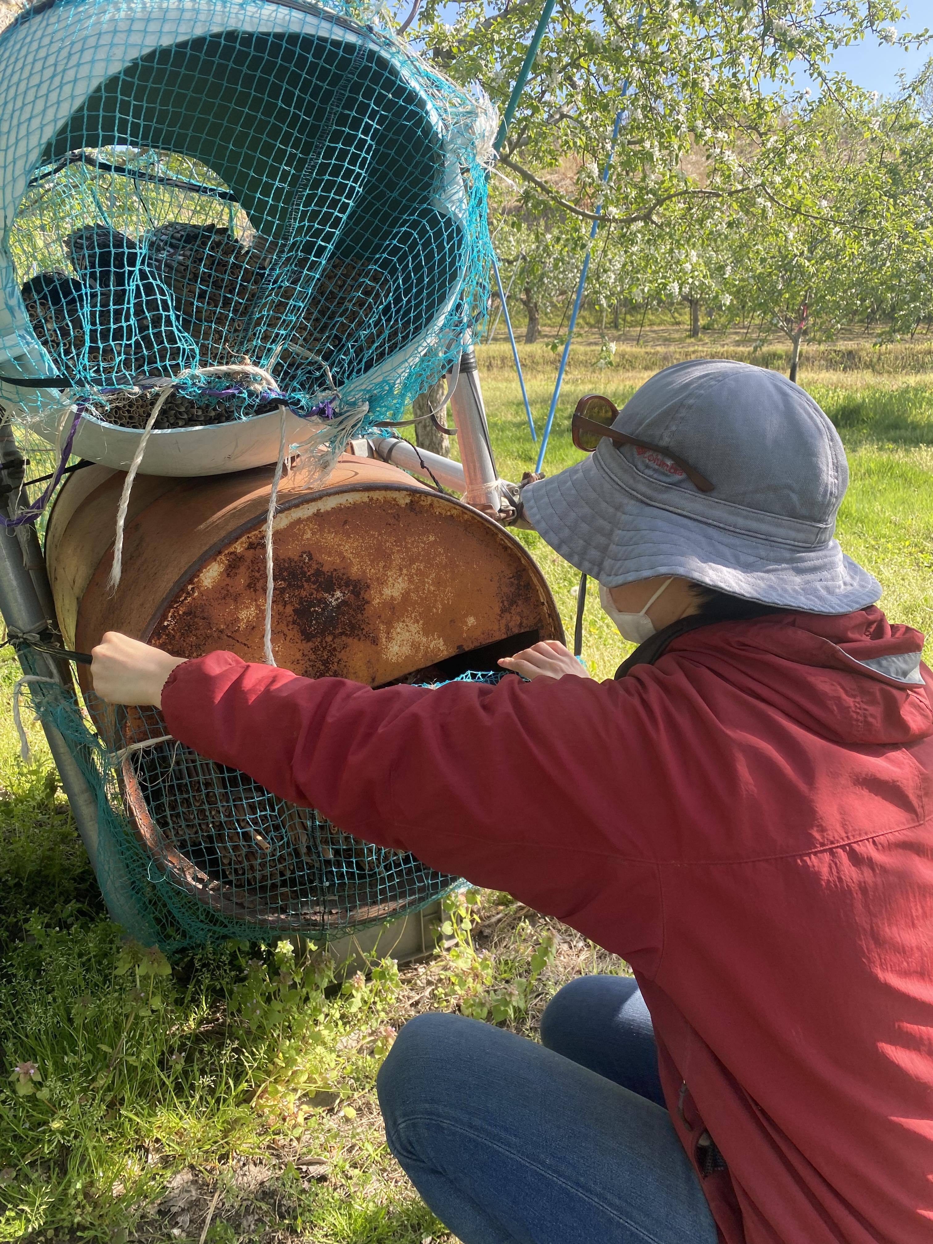 また、りんご畑のアイドル言われるマメコバチにも(巣にも)会えたのがすごく嬉しかったです。ちっこくて、丸っこくて、人を刺さなくて、ペットにしたいくらい可愛いハチです…♡