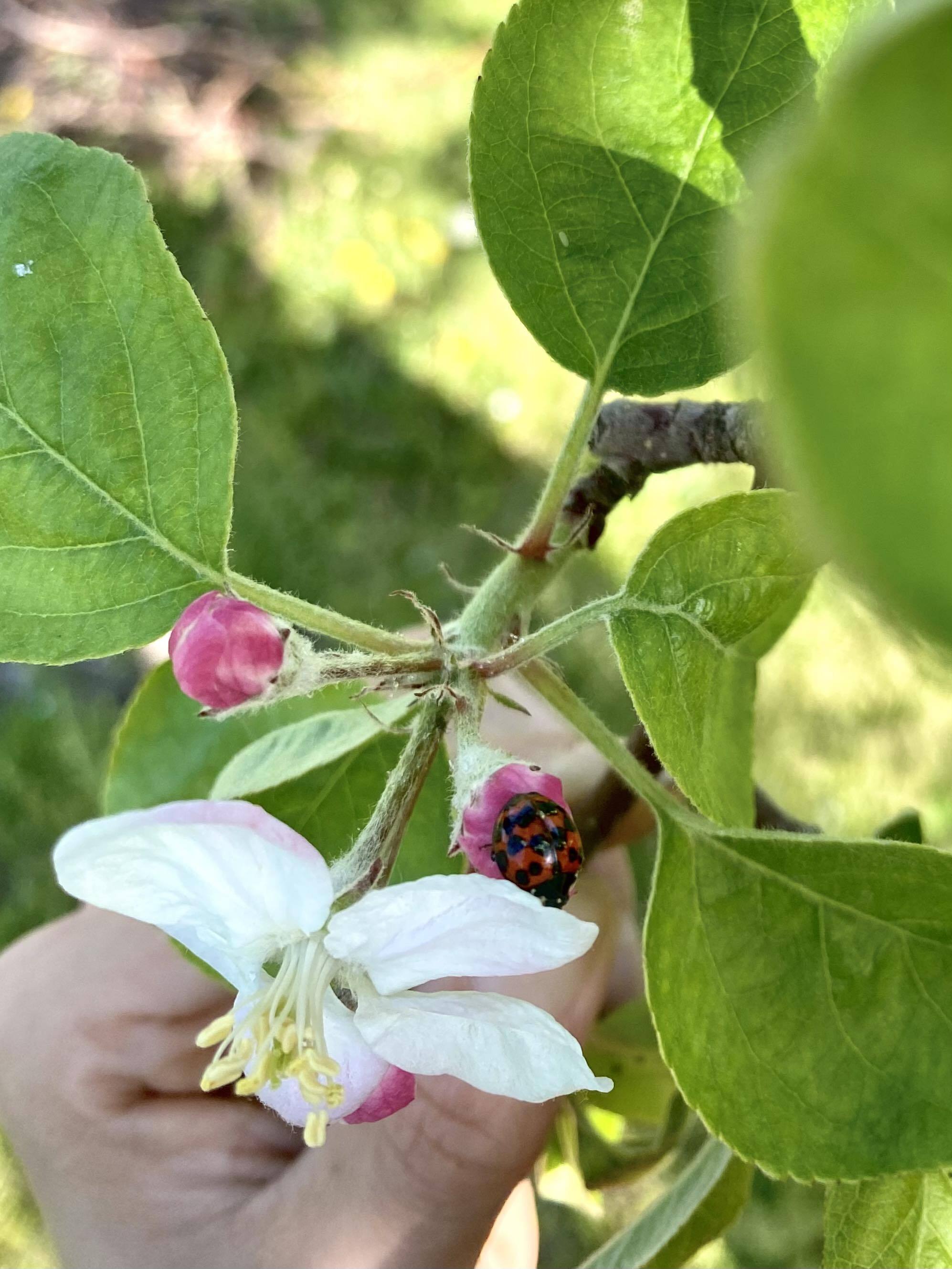 また、りんごの花を摘みながら(摘花教えてもらいながら実践)温子さんと色々話した中で、りんご畑という自然のネットワークの中で、マメコバチと人間はだいたい同じ役割にあるという話が印象に残りました。