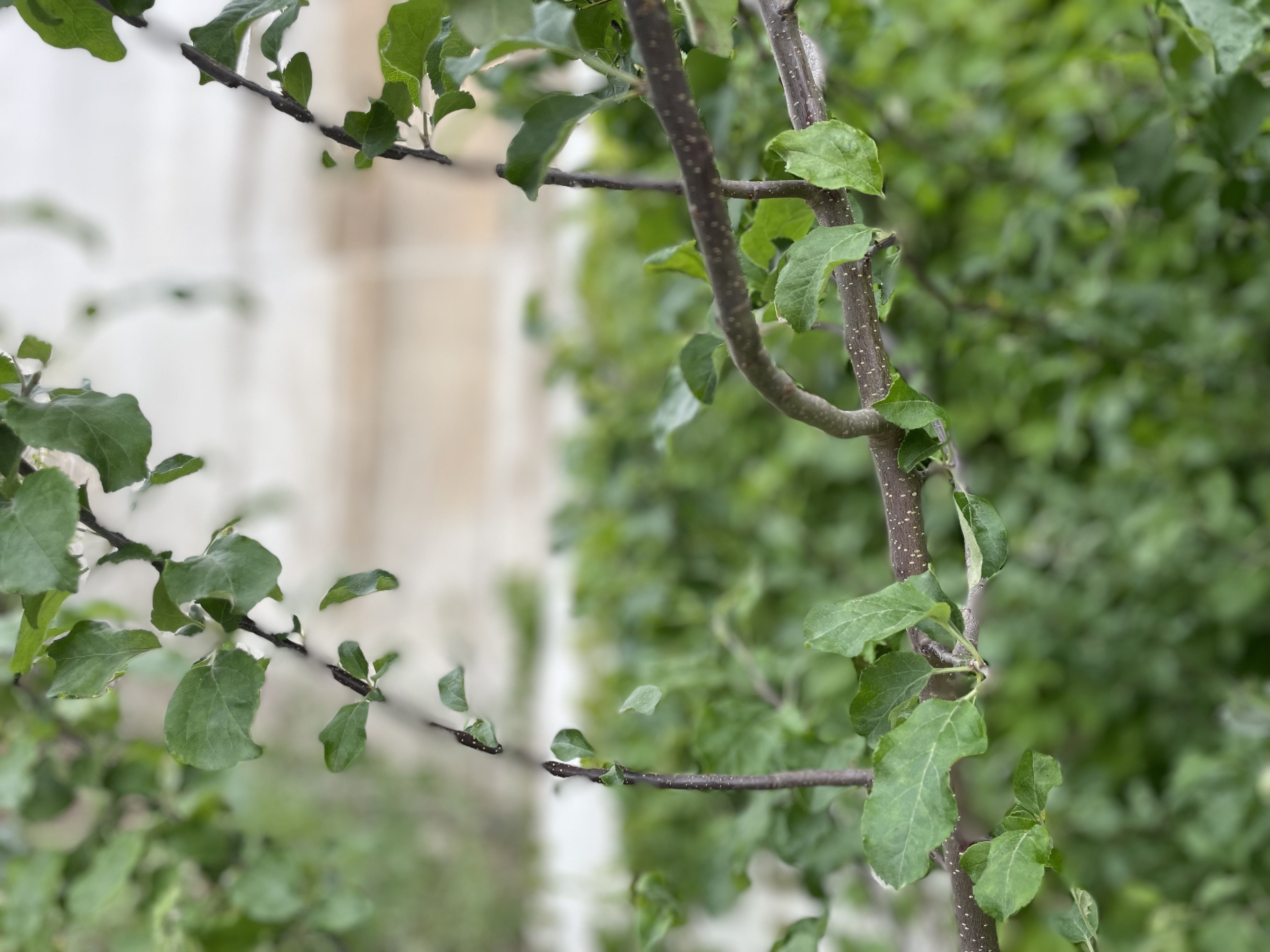 住宅の庭に急に現れた、りんごっぽい苗木。いや、ほんとにりんごっぽい