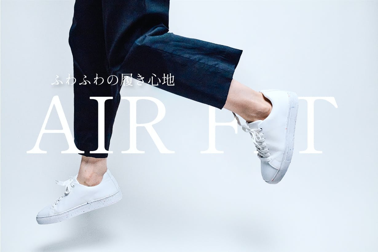 本革よりも軽く柔らかく機能性の高いGRS国際認証を取得したリサイクルレザー「サーキュラーファイバーレザー」を採用。デザインをALLEST(ALL+LESS+BEST)コンセプトで「無駄を省き」履いた時に「あっ、軽い!」と感じる軽さを実現しました。(片足の重量約281.6g)