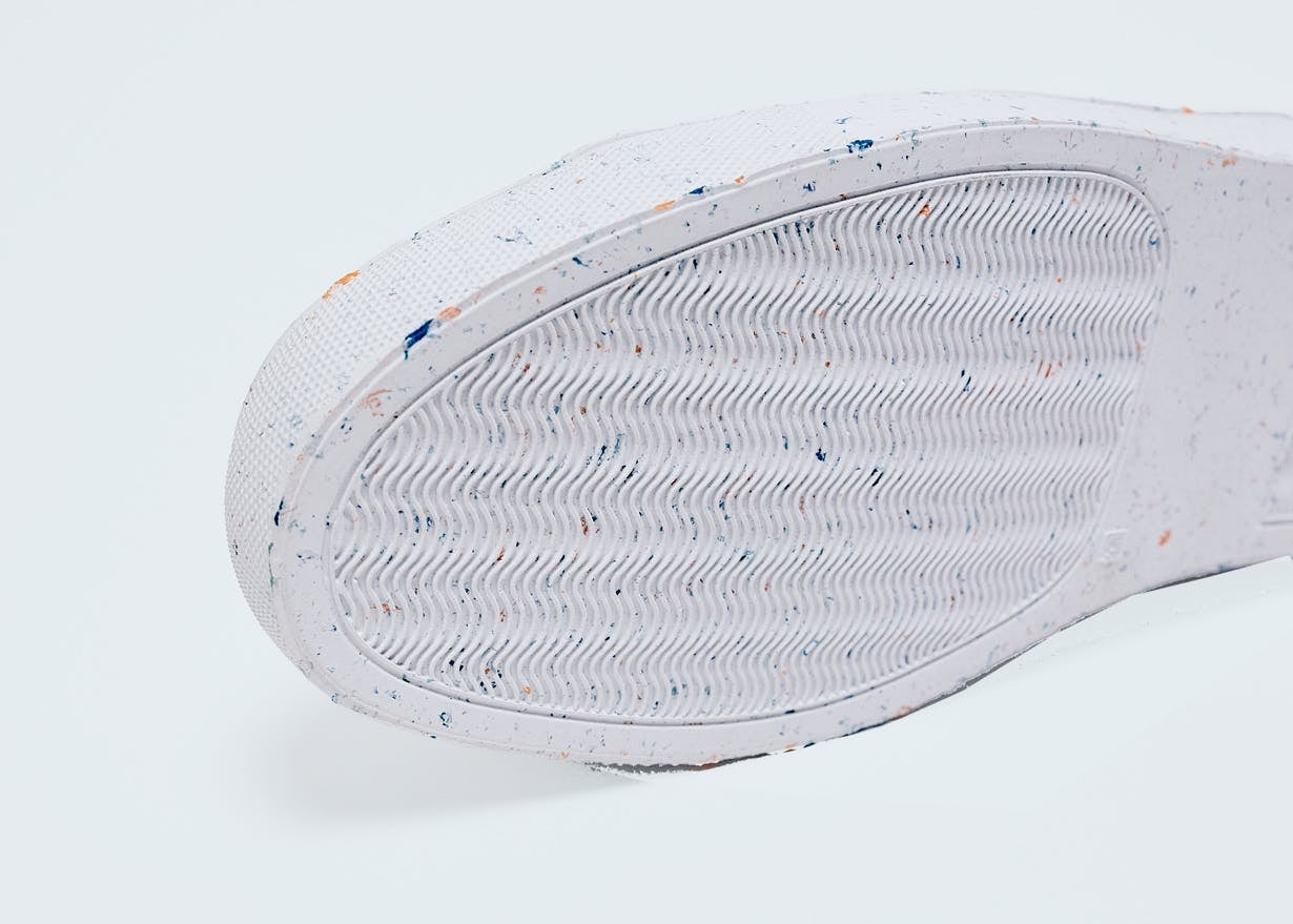 白いソールに「粒粒のカラー」が混じっているのは回収プラスチックです。ALLESTスニーカーの「アイコン」でもあります。